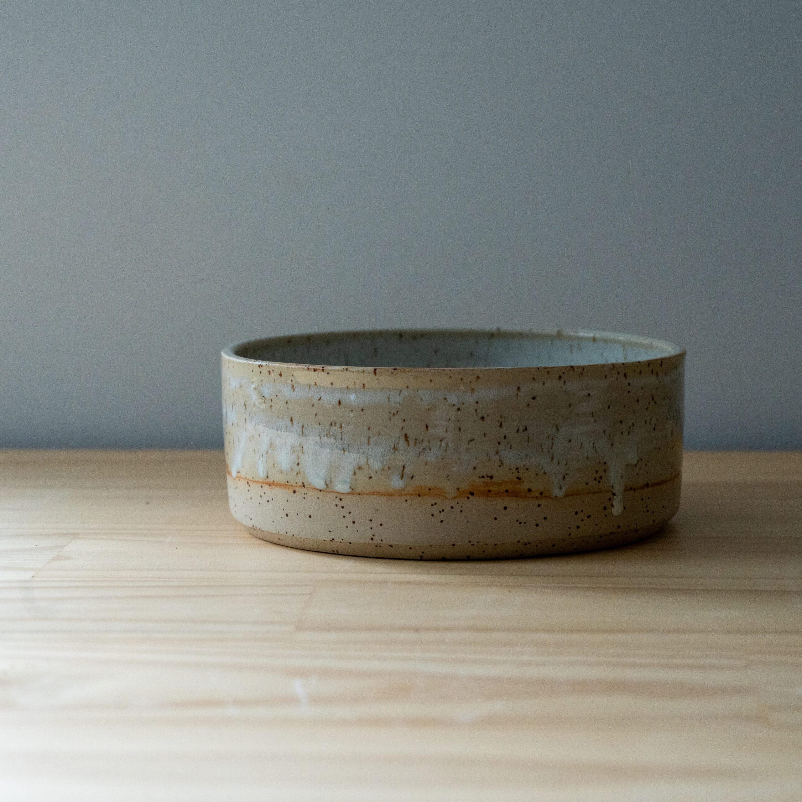 This bowl has been handcrafted on a pottery wheel. It is made with speckle stoneware and finished with a honey glaze.