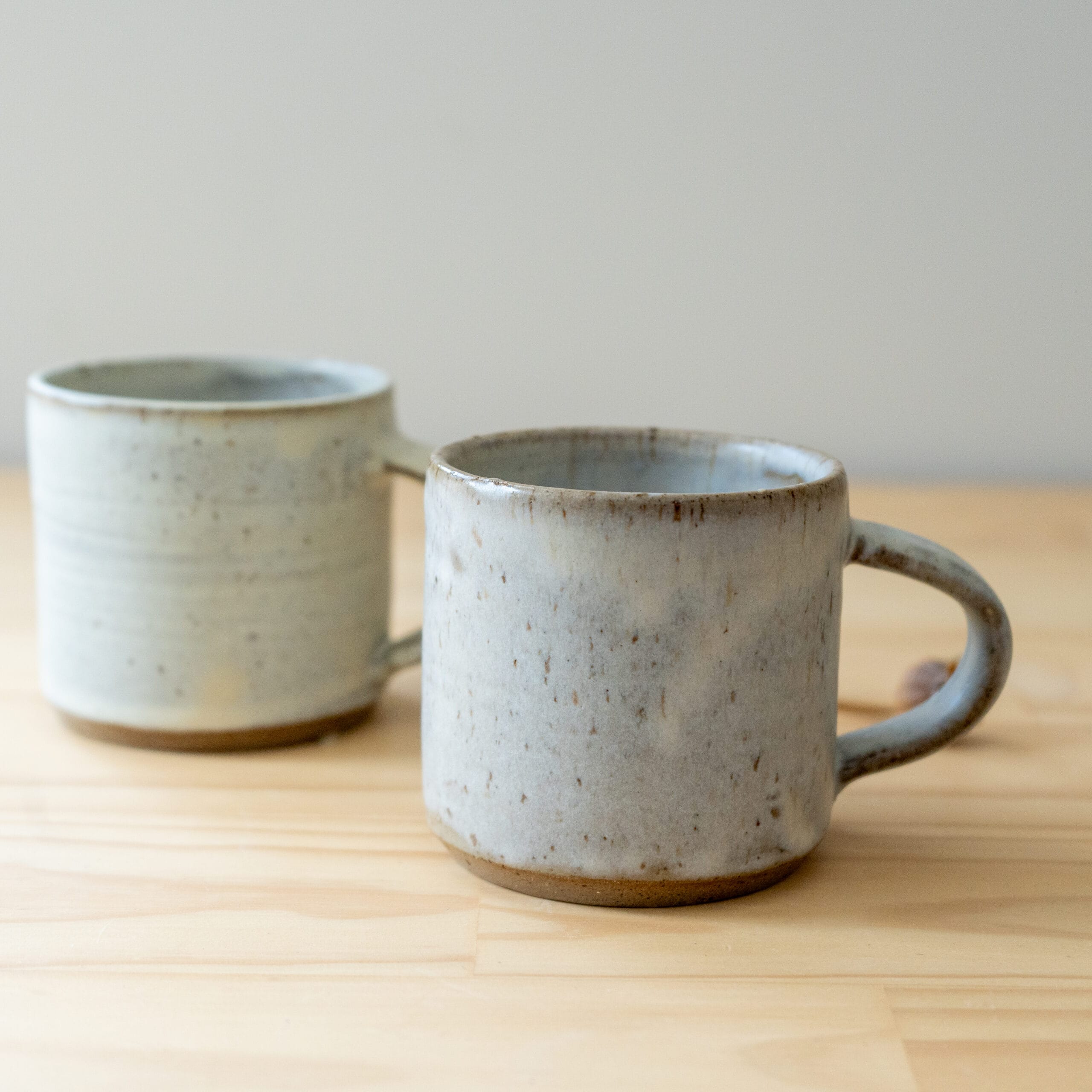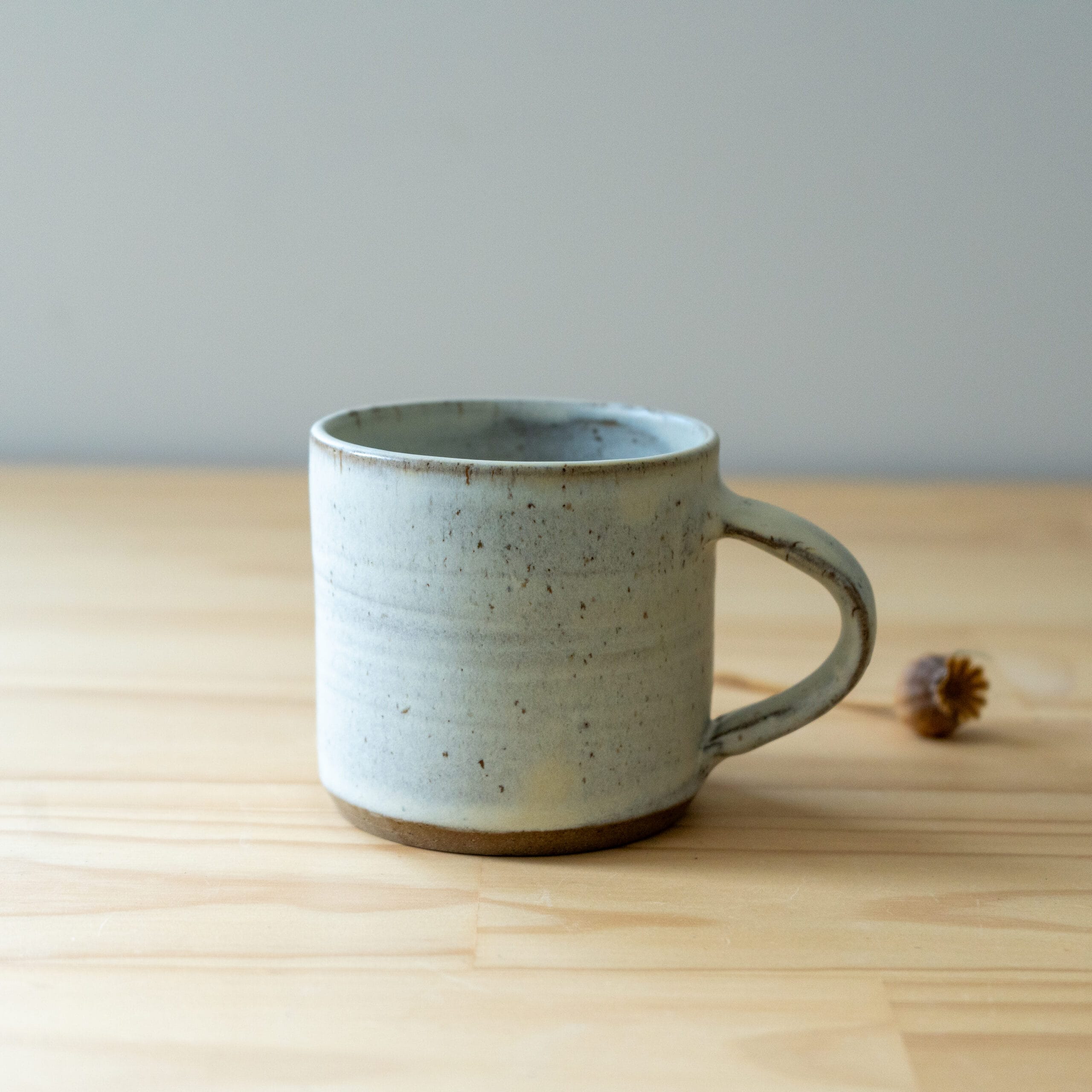 This cup has been handcrafted on a pottery wheel. It is made with New Zealand a mix of stoneware clays and finished with a matt white glaze.