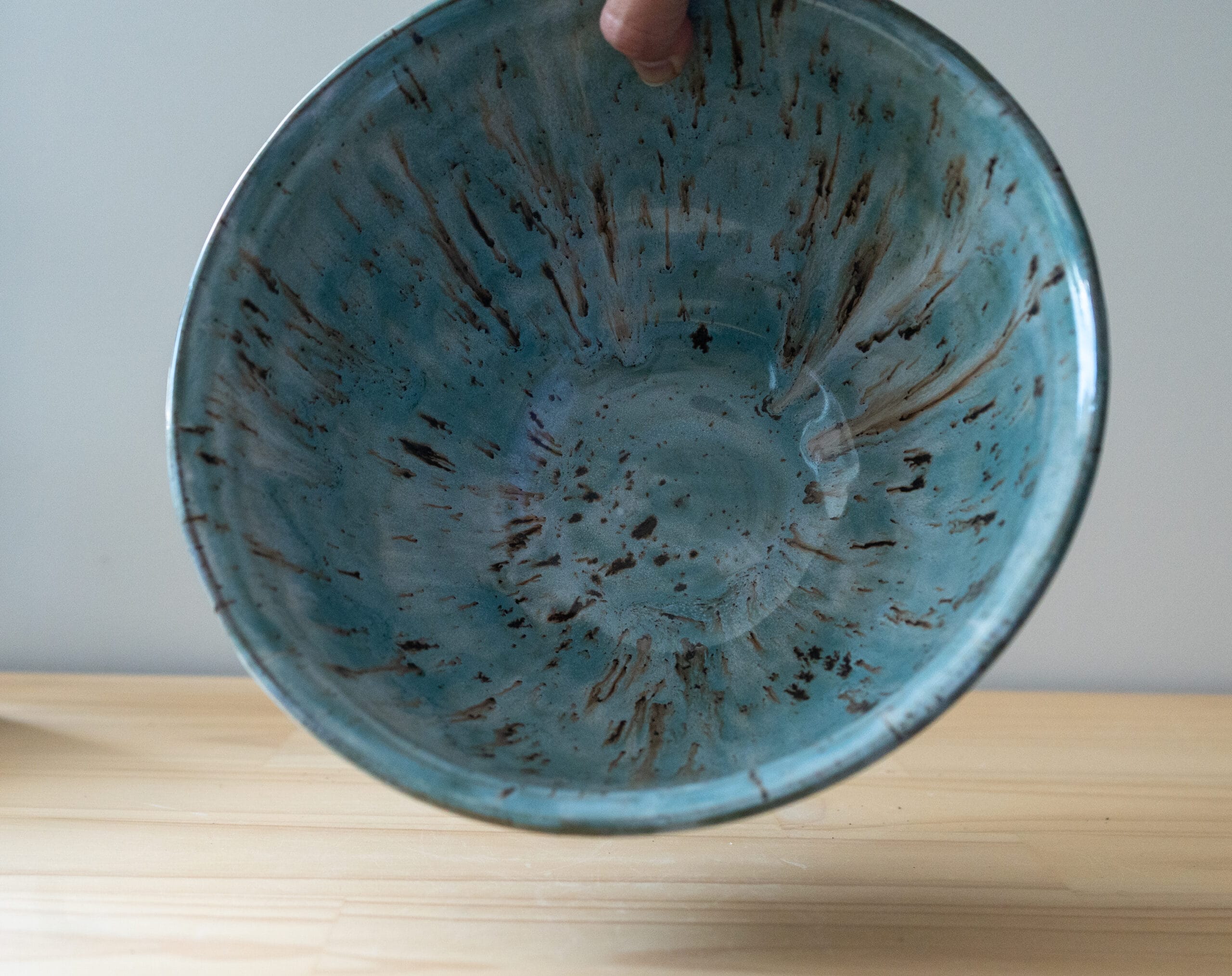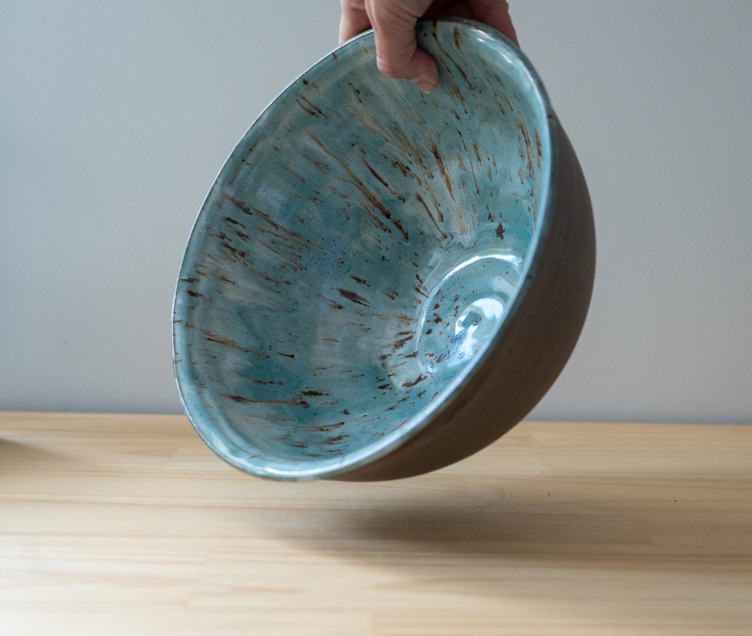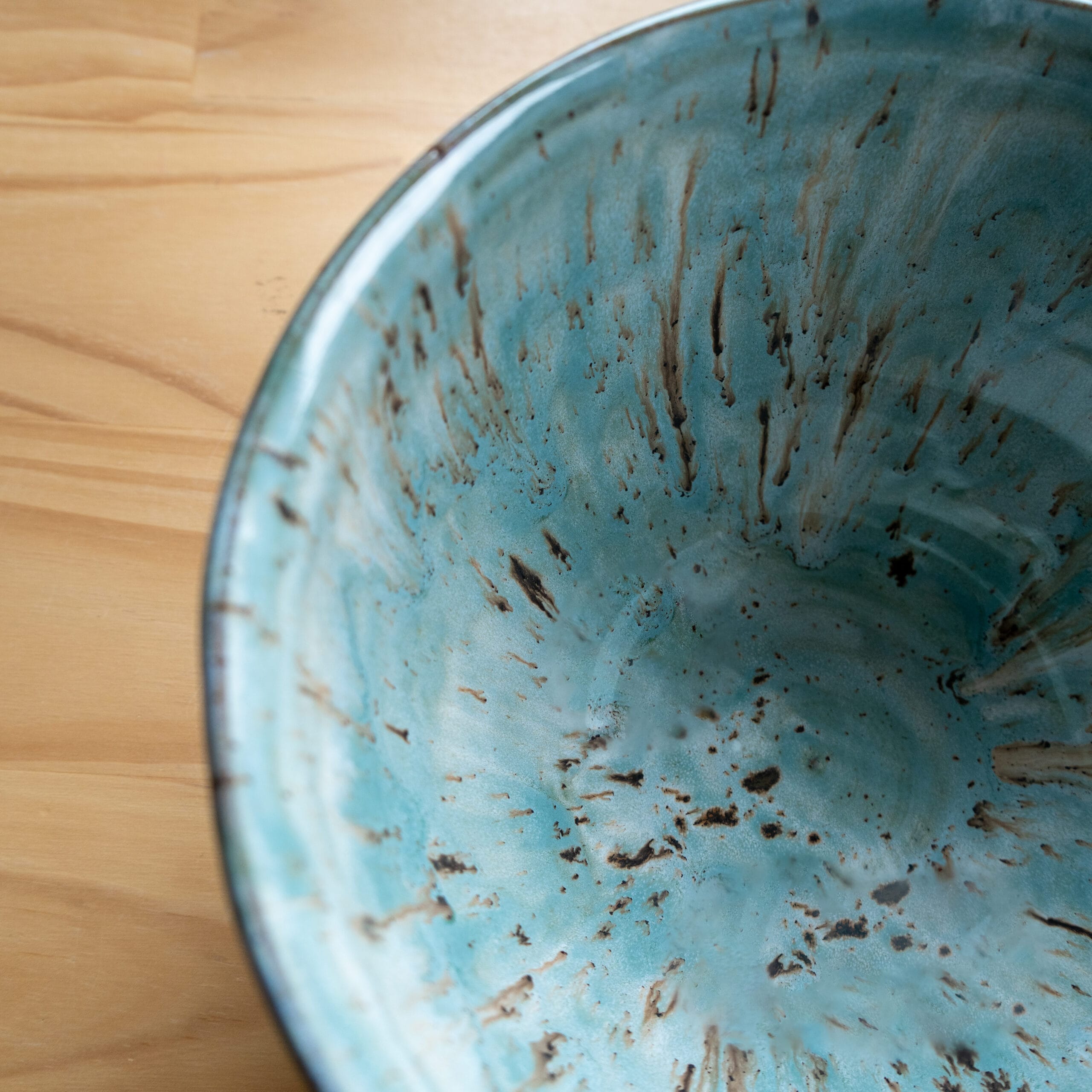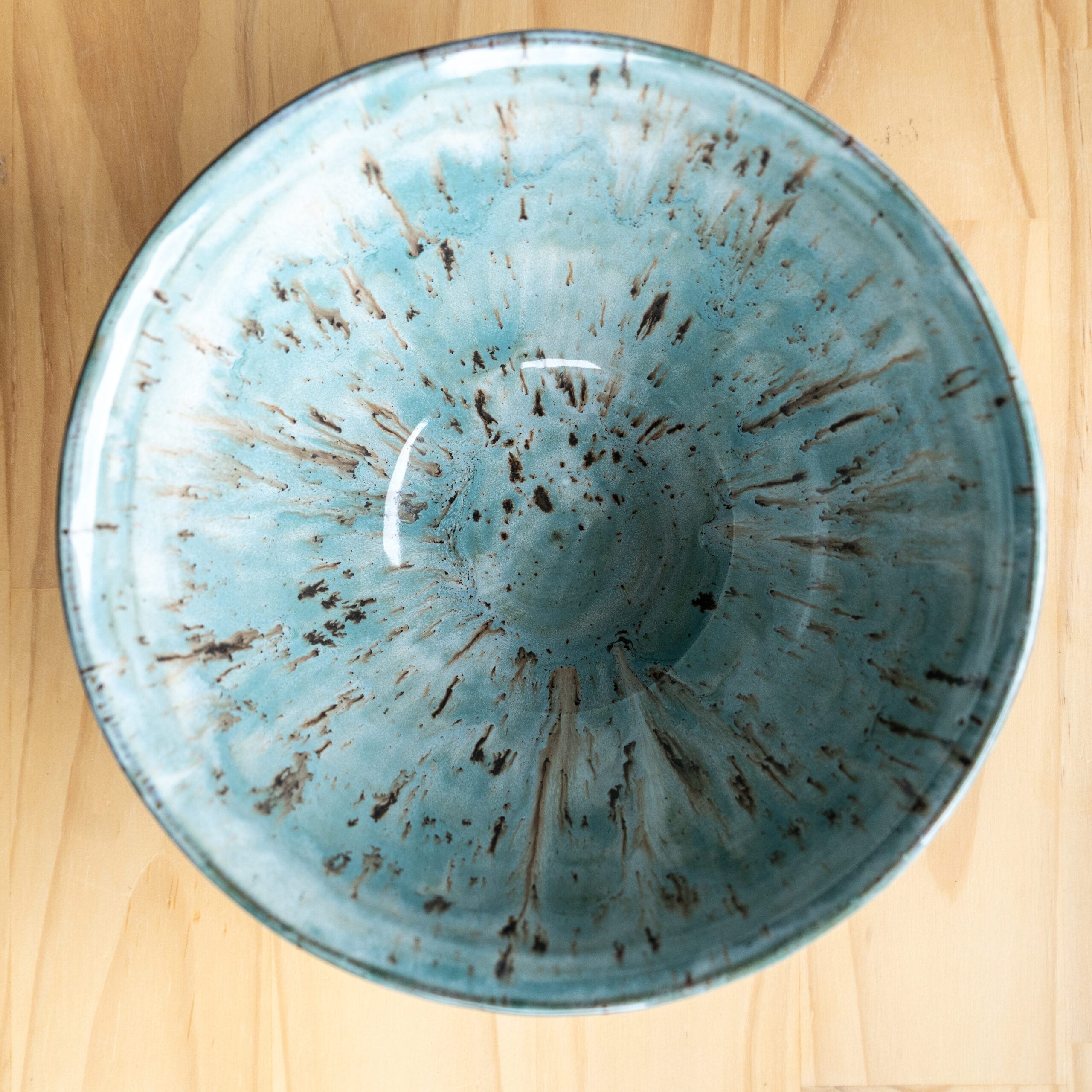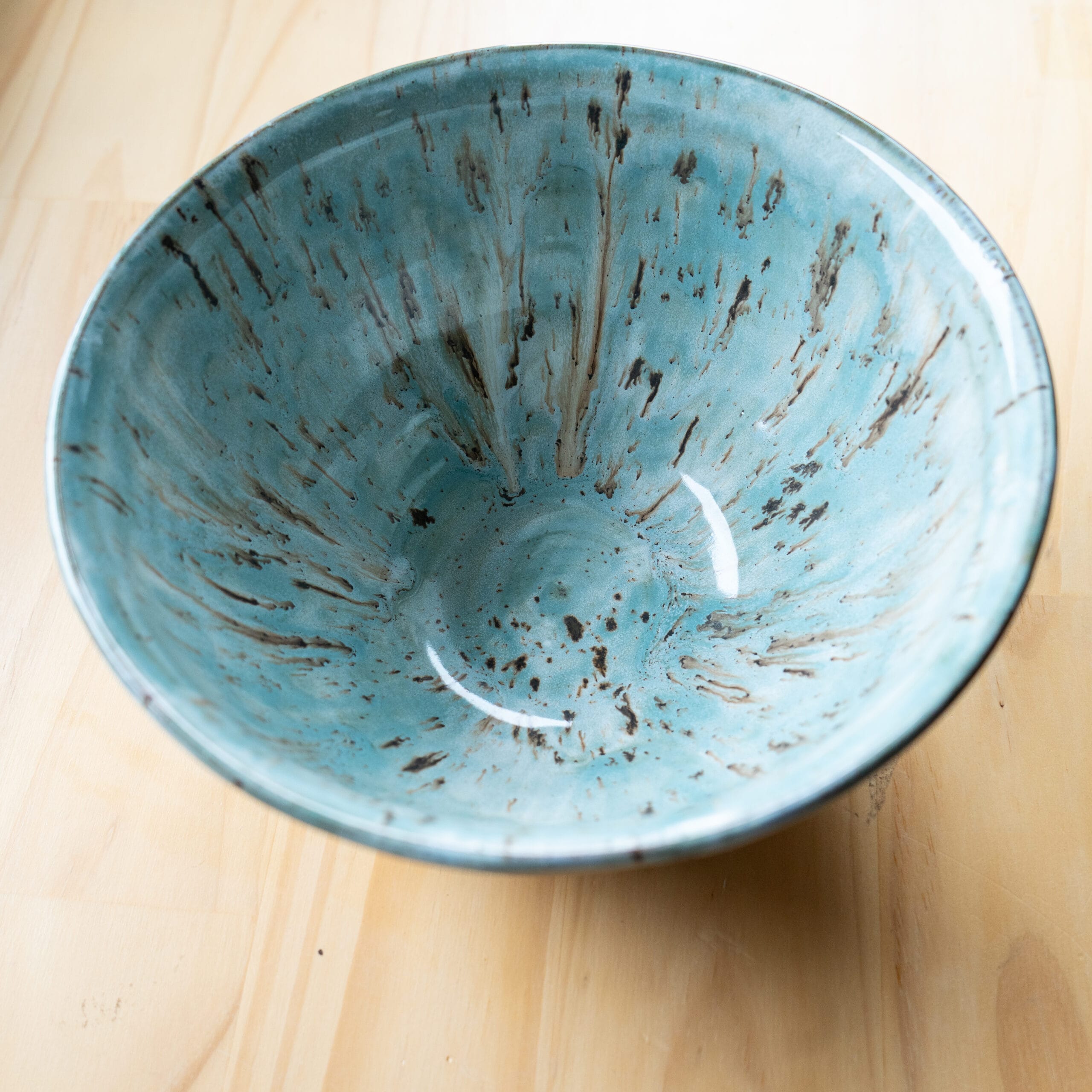 Stoneware Bowl with Teal Splash Glaze