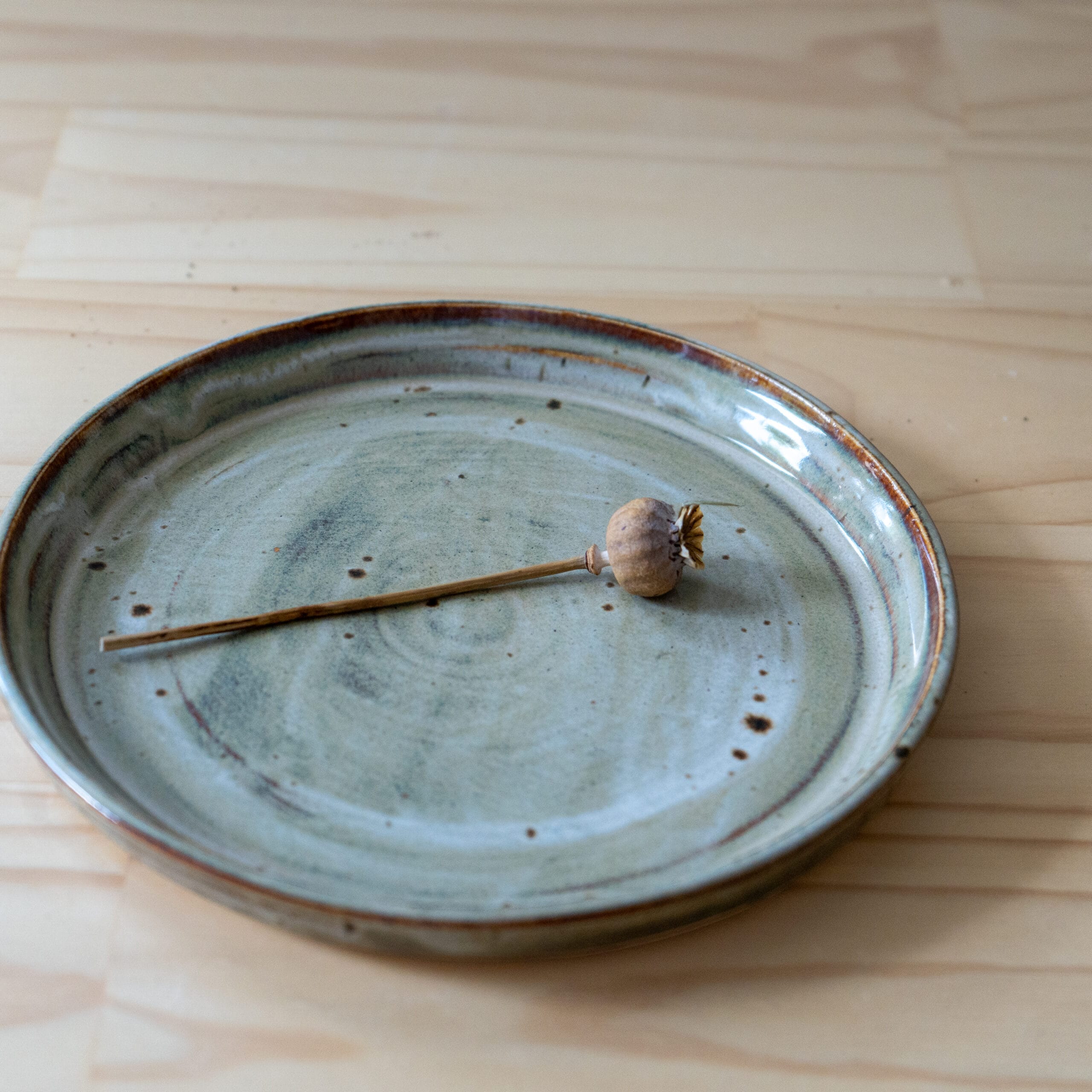 This small plate has been handcrafted on a pottery wheel. It is made with mixed buff stoneware and finished with a dusk glaze.